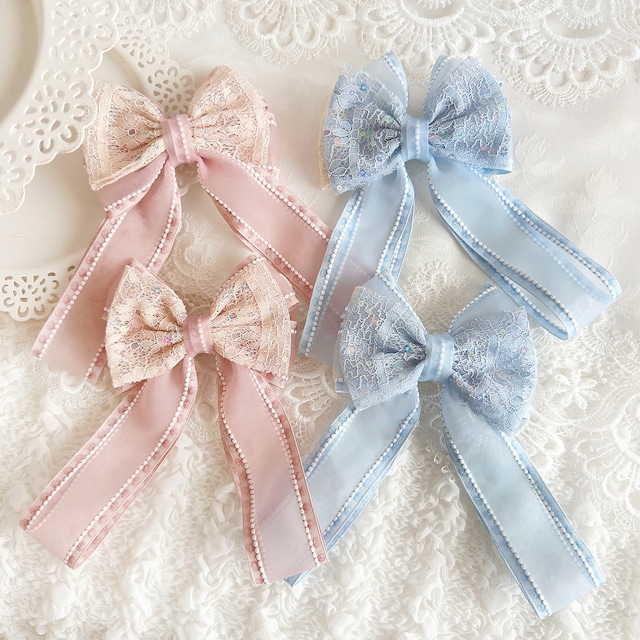 スパンコールレース&オーガンジーリボンヘアクリップセット P1950