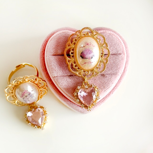 ✨Purple Cream Jewelry オリジナルデザインアクセ✨ レディ3人・ケーキモチーフにハートのチャームがついたリング♡ 当店オリジナルギフトリングボックスにお入れしてお届け致します✨ レディ3人・ケーキの2種類 ※1個ずつの販売です。 ※表面コーティングの際に細かい気泡が入っている場合がございます。 ※こちらの商品は梱包が厚さ3cmを超えますのでゆうパックでのお届けとなります。 色:ゴールド サイズ:フリーサイズ 素材:樹脂、亜鉛合金 原産国:日本 ❤️GIFT WRAPPING❤️ ❤︎GIFT BOX❤︎ Purple Creamオリジナルギフトボックス https://purplecream.theshop.jp/items/34550130 ❤︎GIFT BOX❤︎ Purple Creamオリジナルギフトリングボックス https://purplecream.theshop.jp/items/40102562 ※ご購入毎に必ずお読み下さい↓ https://purplecream.theshop.jp/about