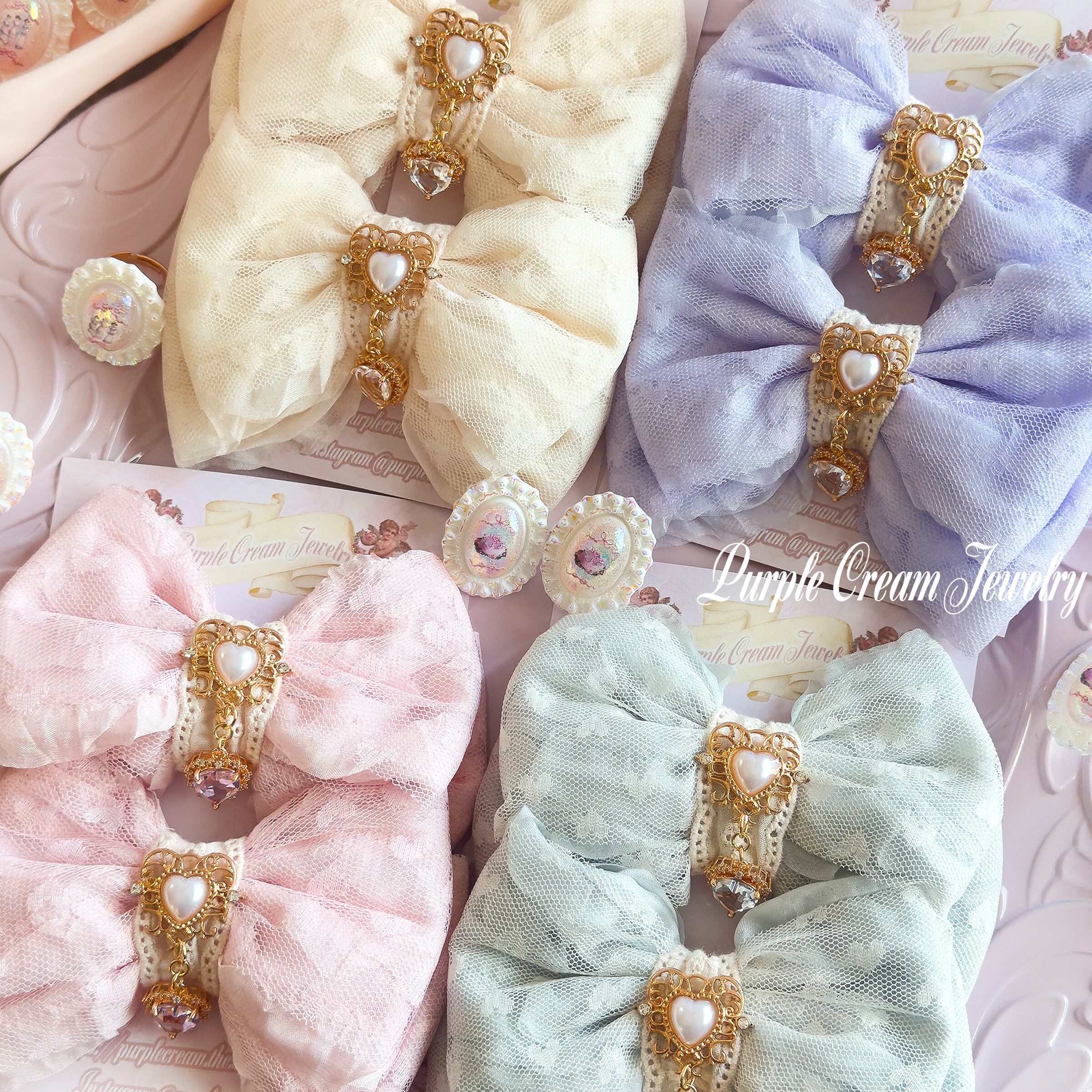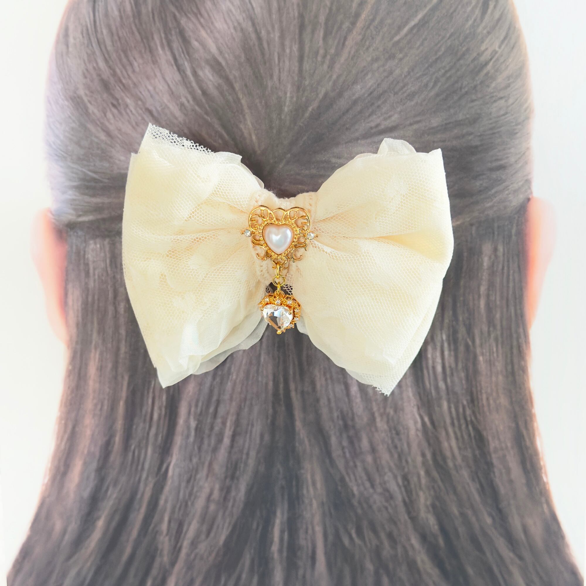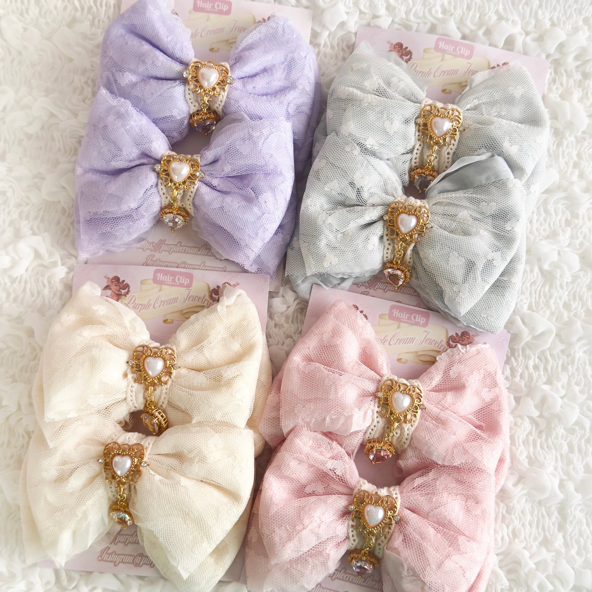フリル&ハートチュールリボンヘアクリップセット P1886