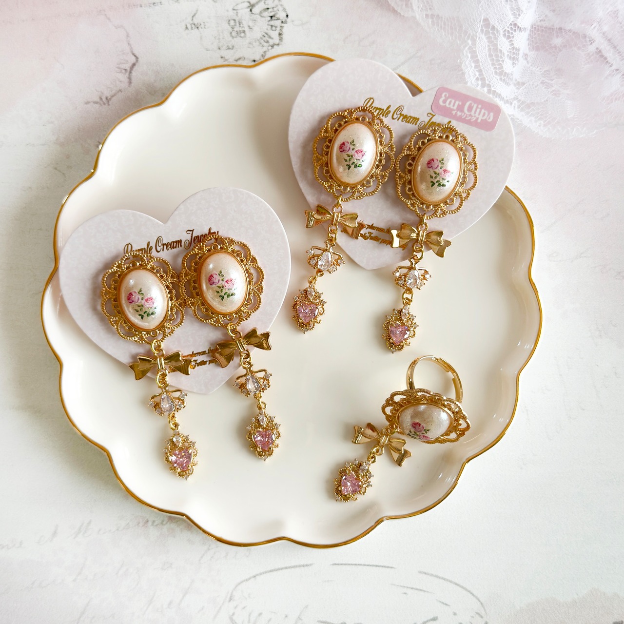 リボンやピンクハートのチャームがついたキュートなピアス・イヤリング♪