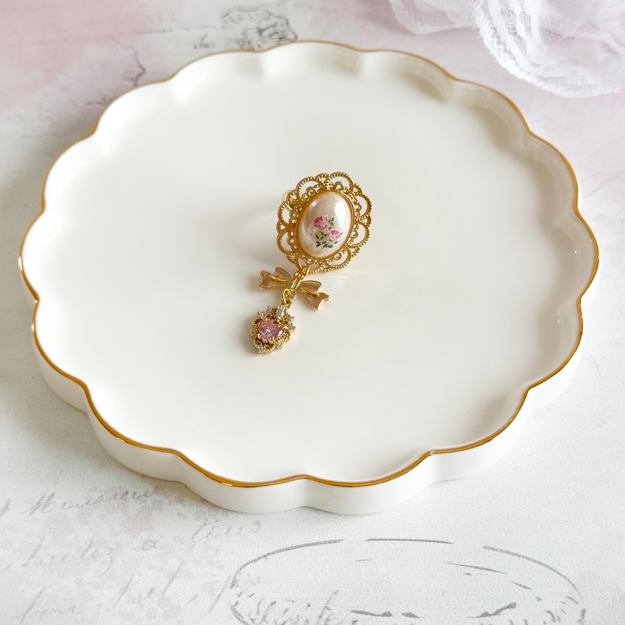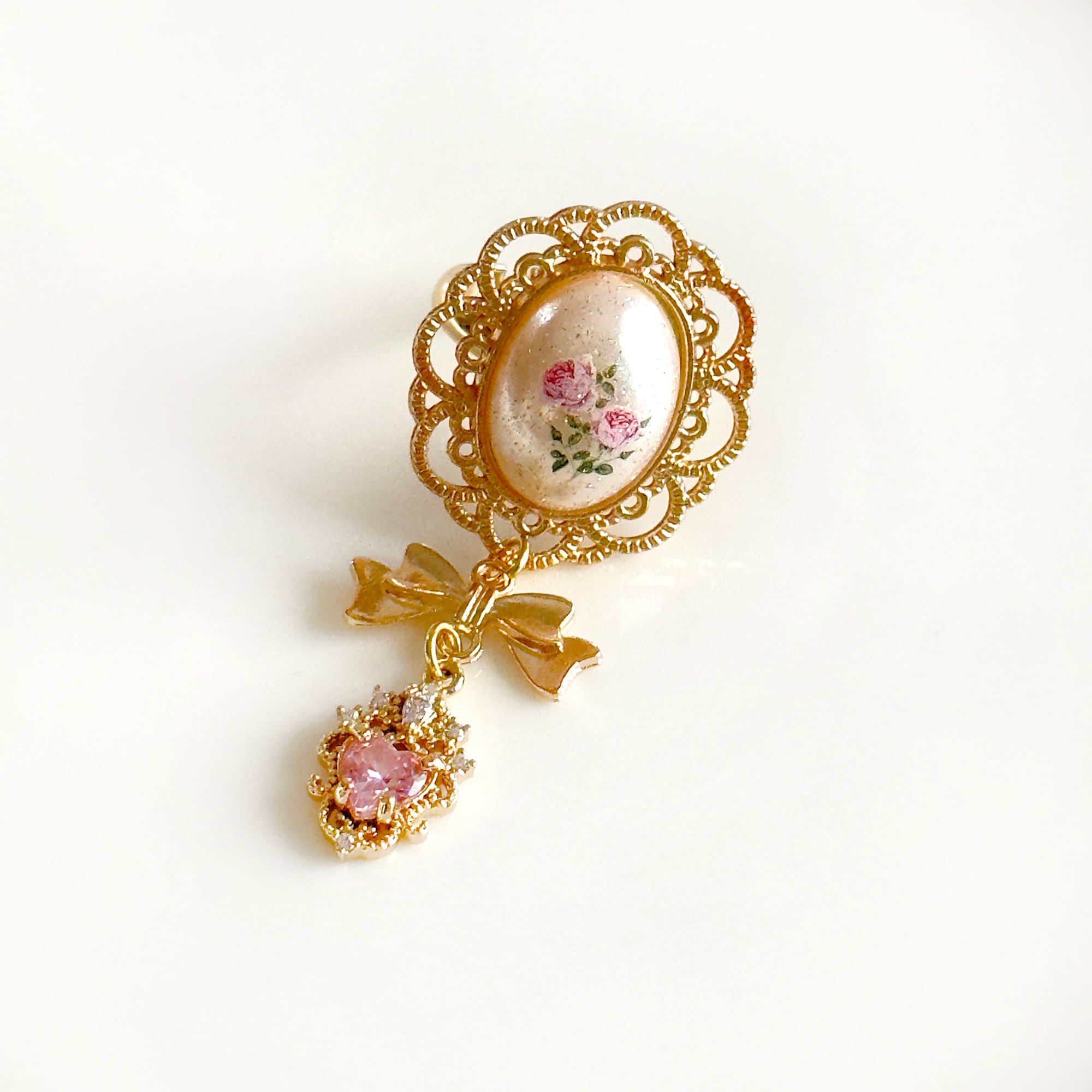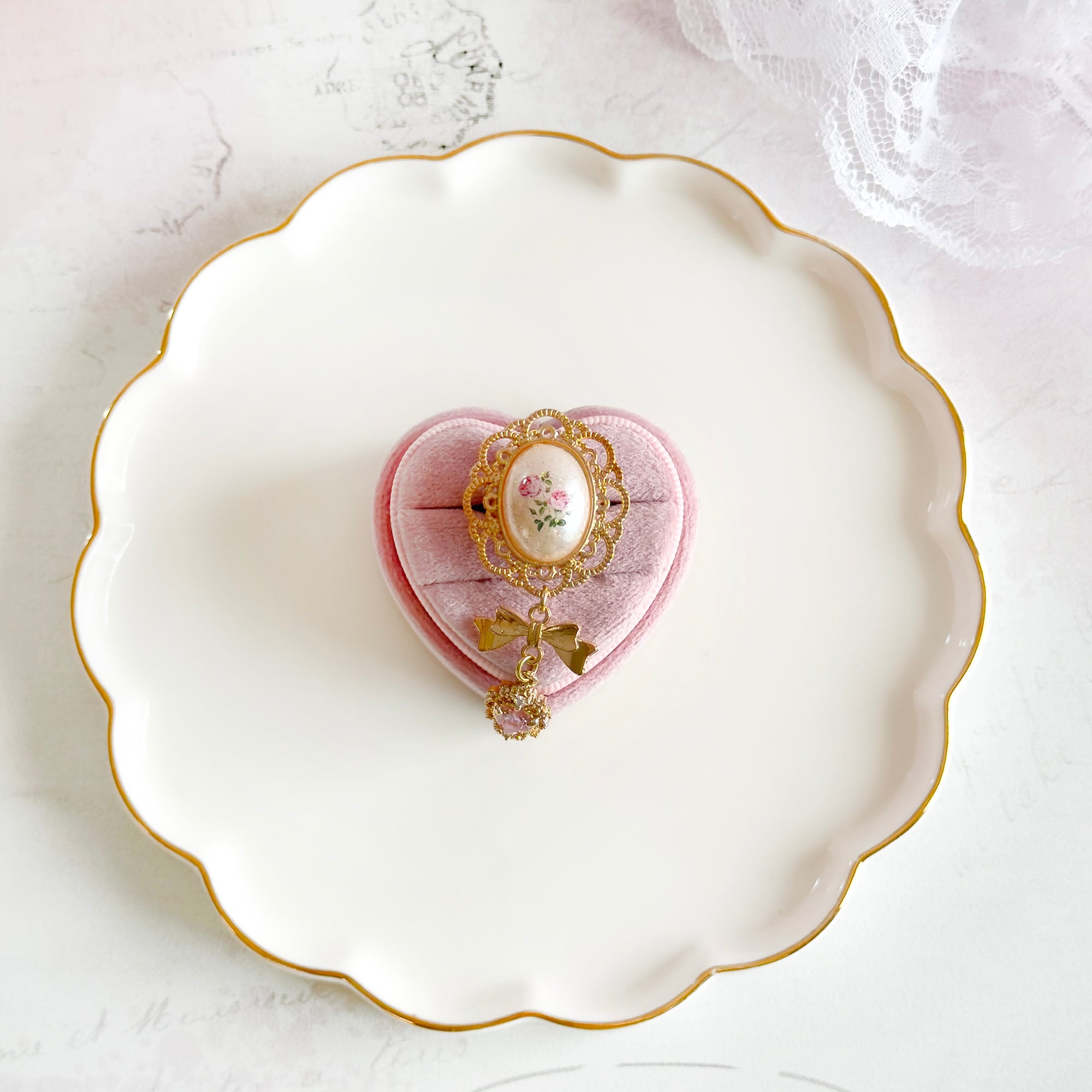 ローズモチーフにリボンとハートのチャームがついたリング♡