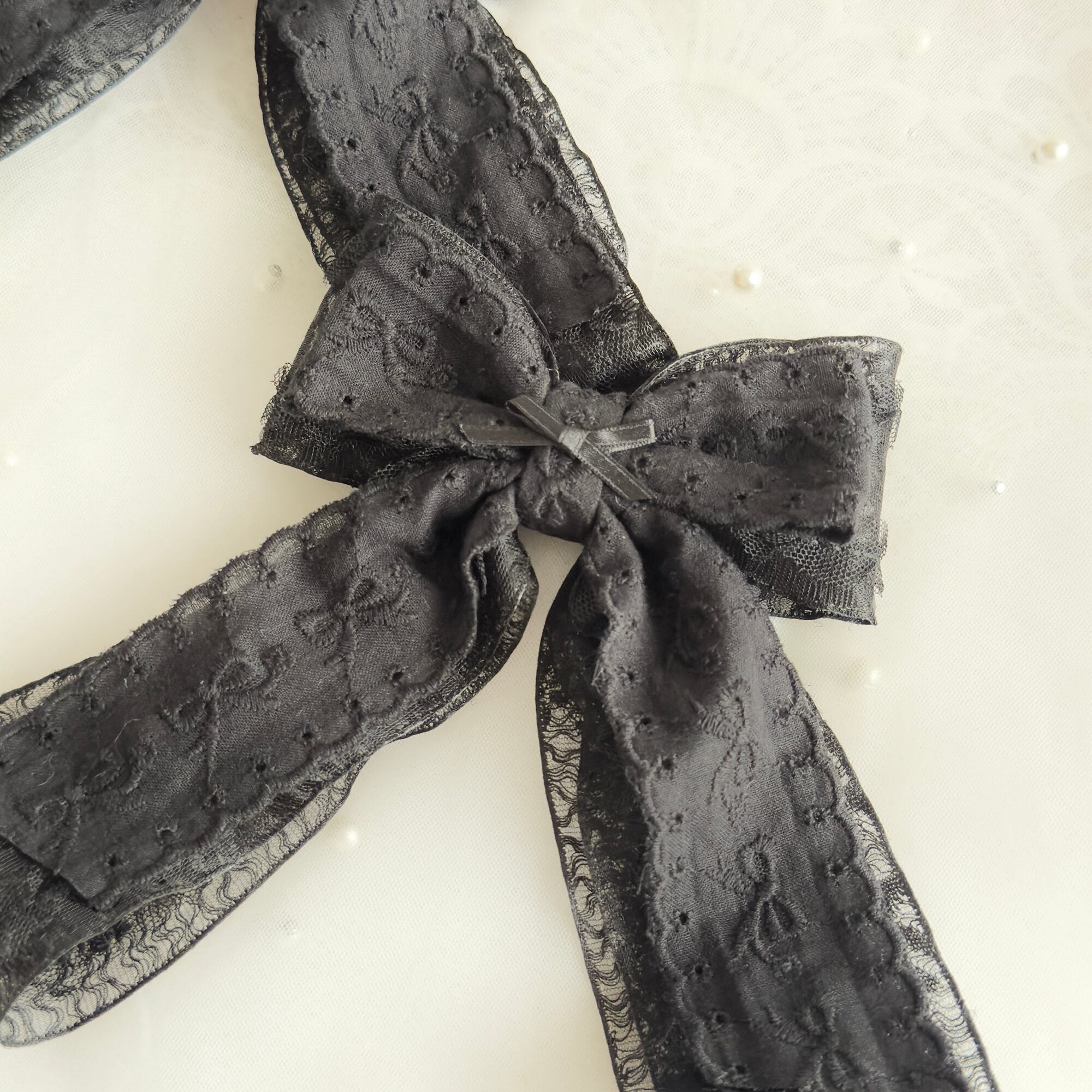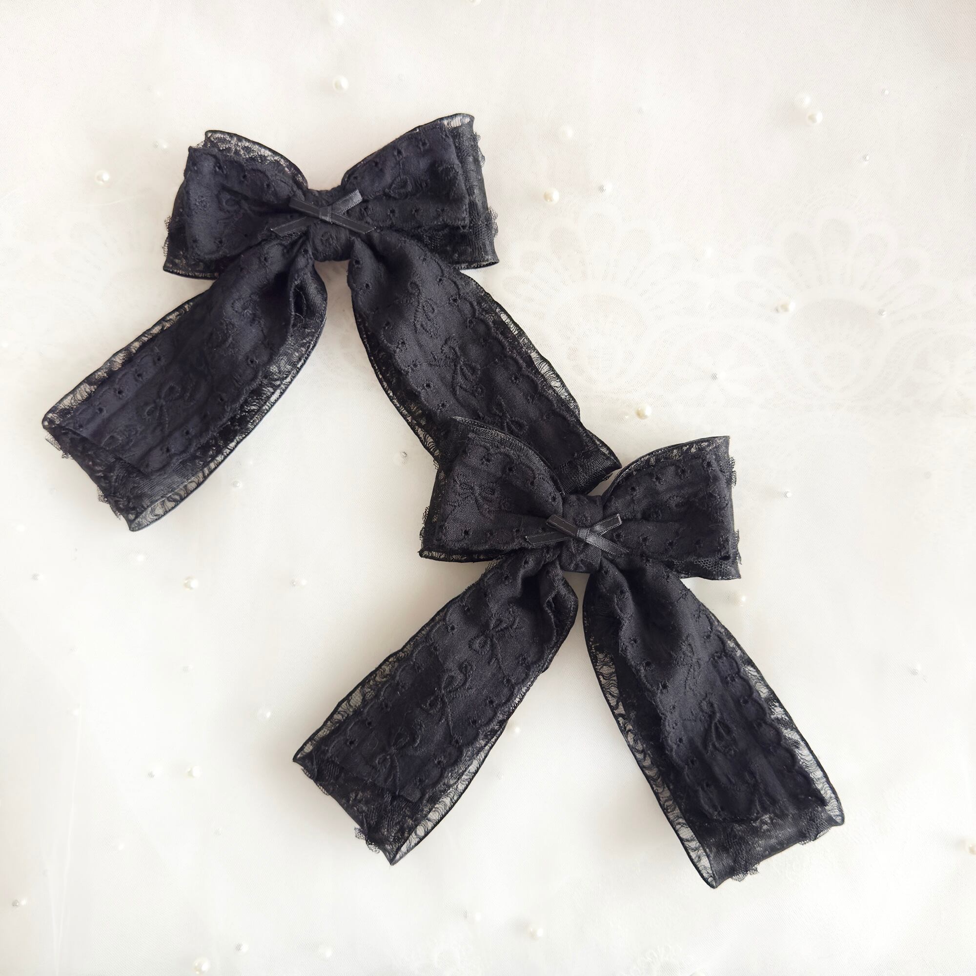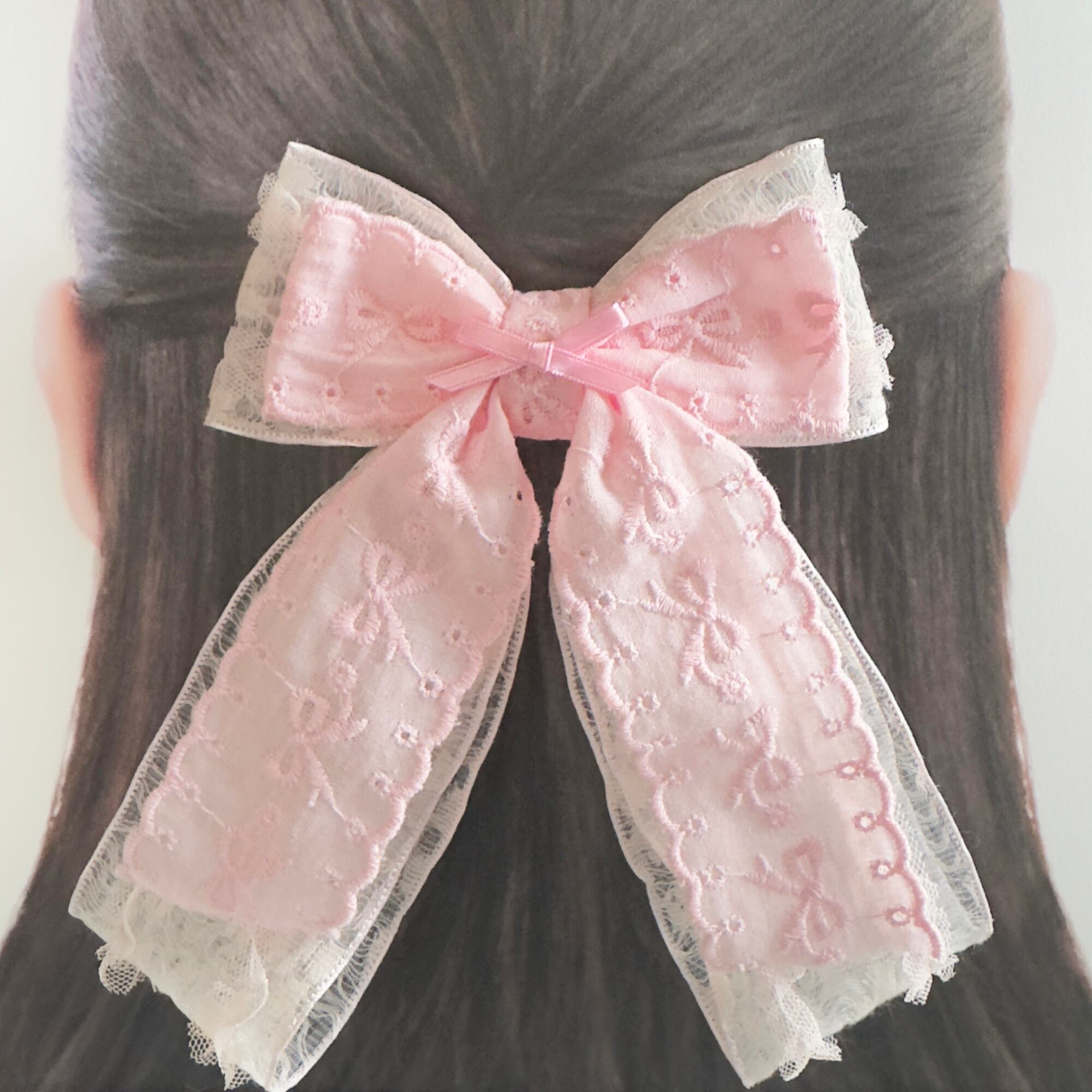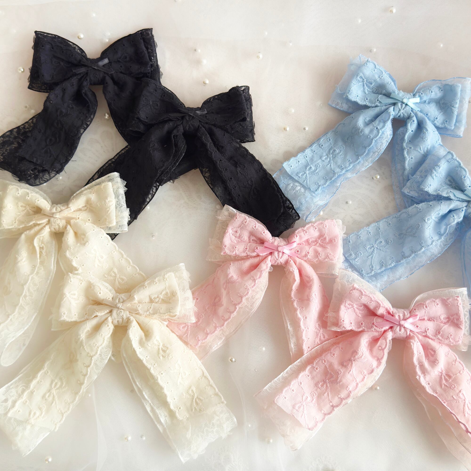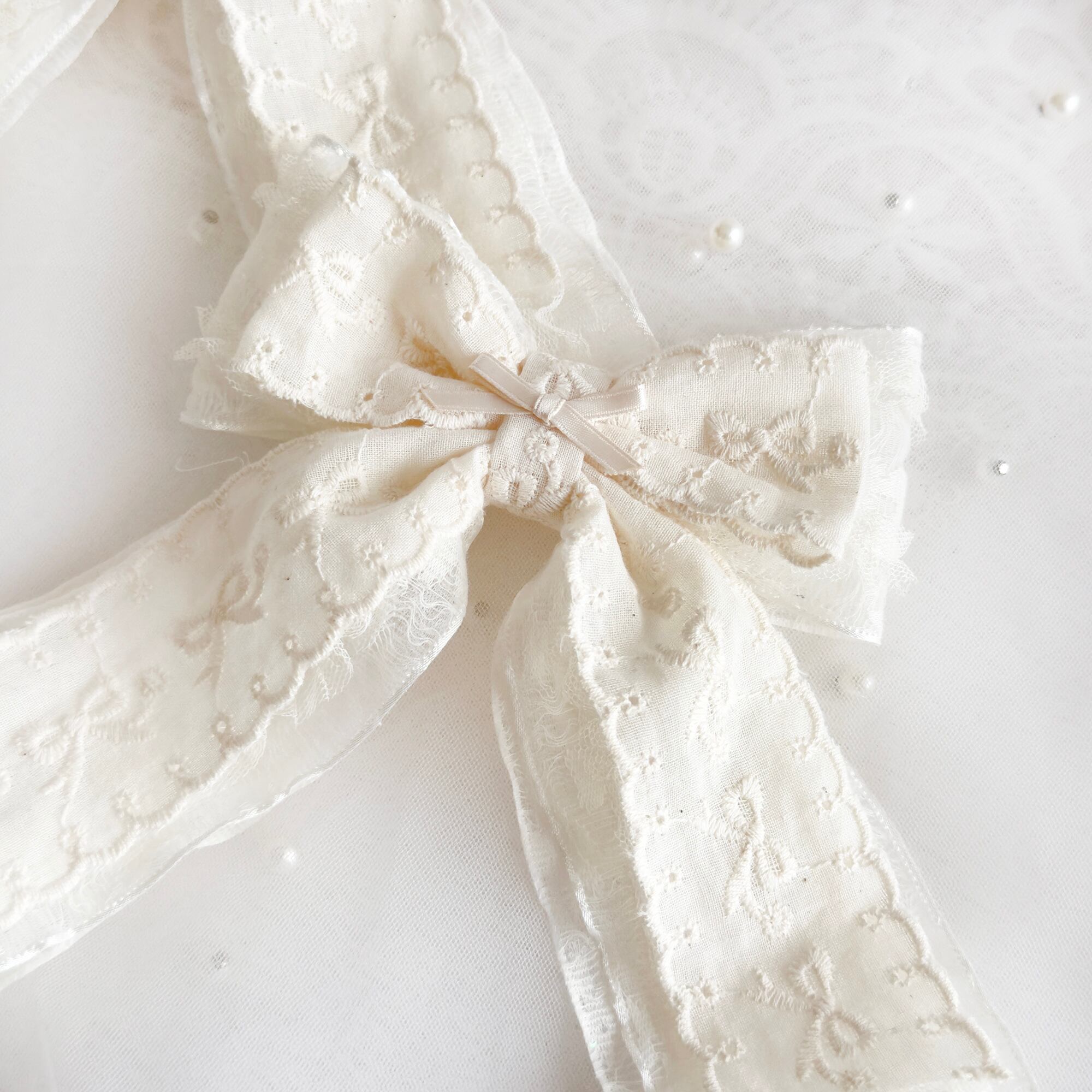 レースオーガンジーリボンにリボン刺繍のコットンリボンがダブルでボリューミーなヘアクリップセット♡