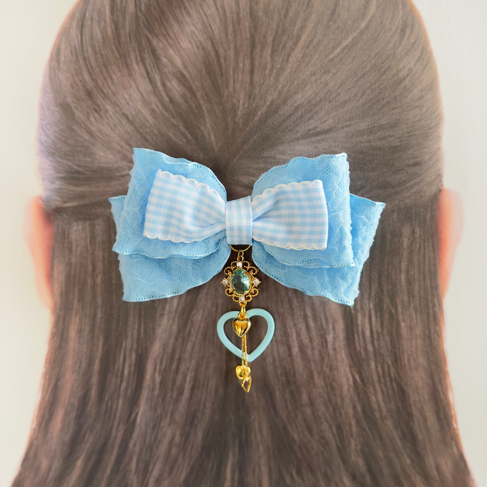 ギンガムチェックチャームリボンヘアクリップセット P1943