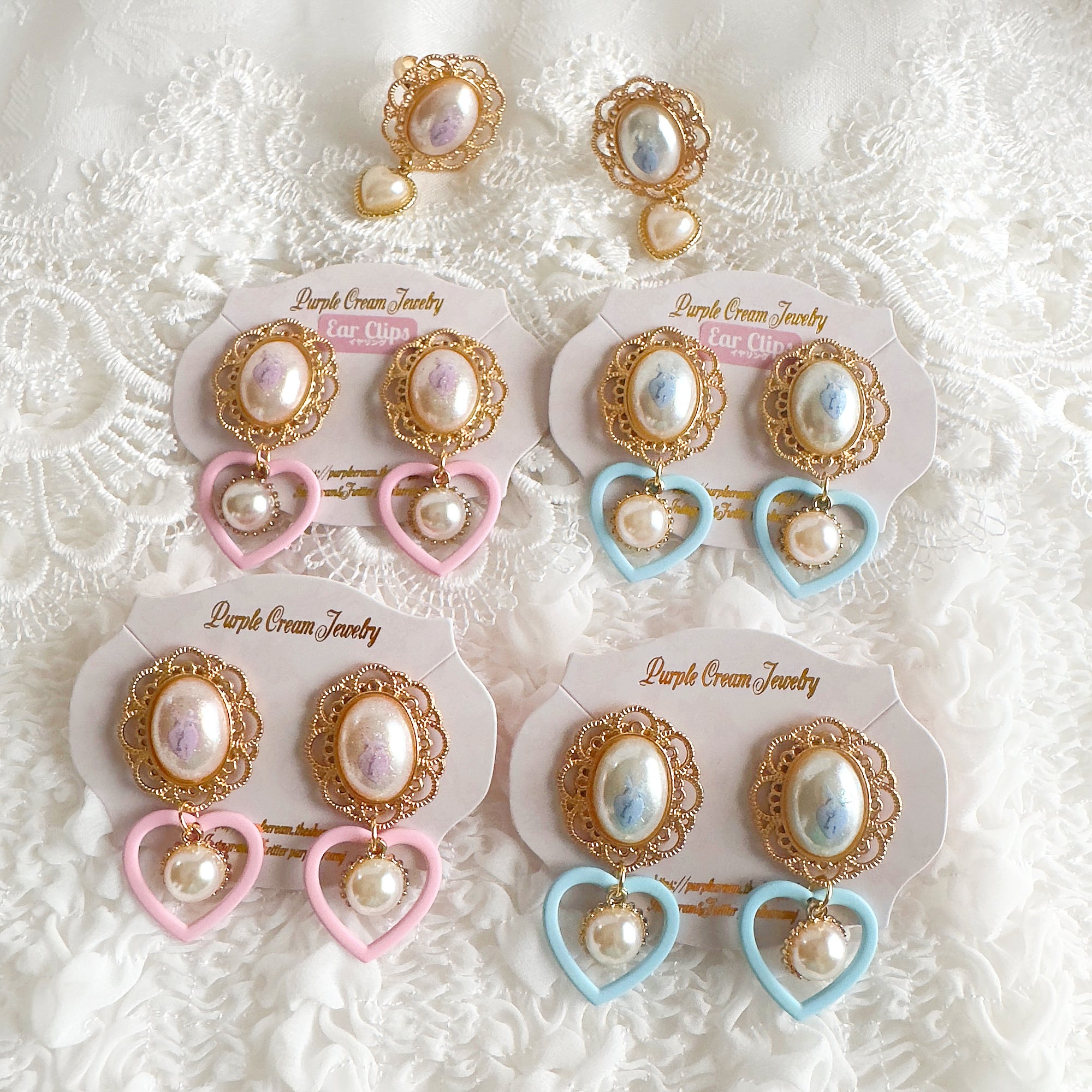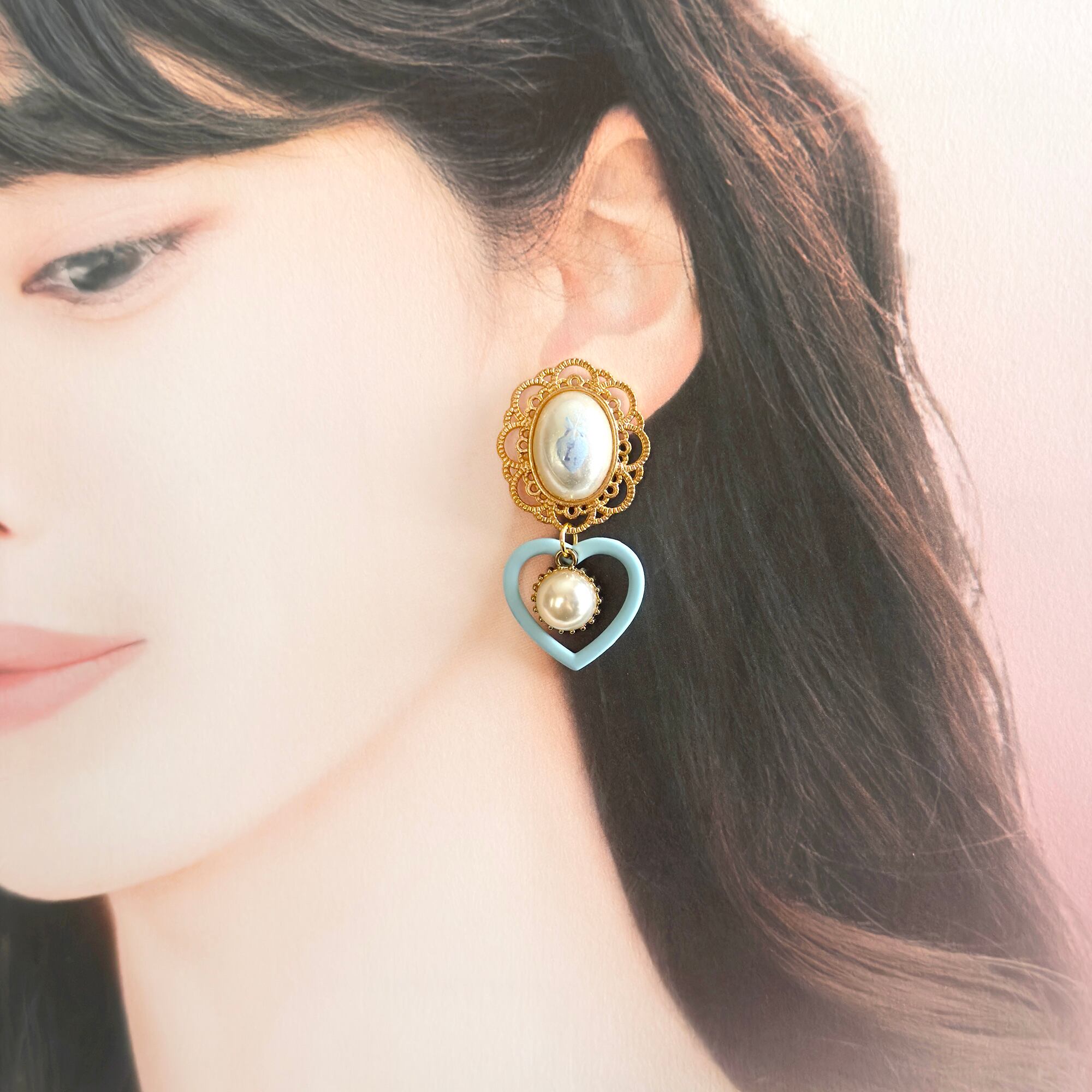 ハートのチャームとパールチャームがついたキュートなピアス・イヤリング♪