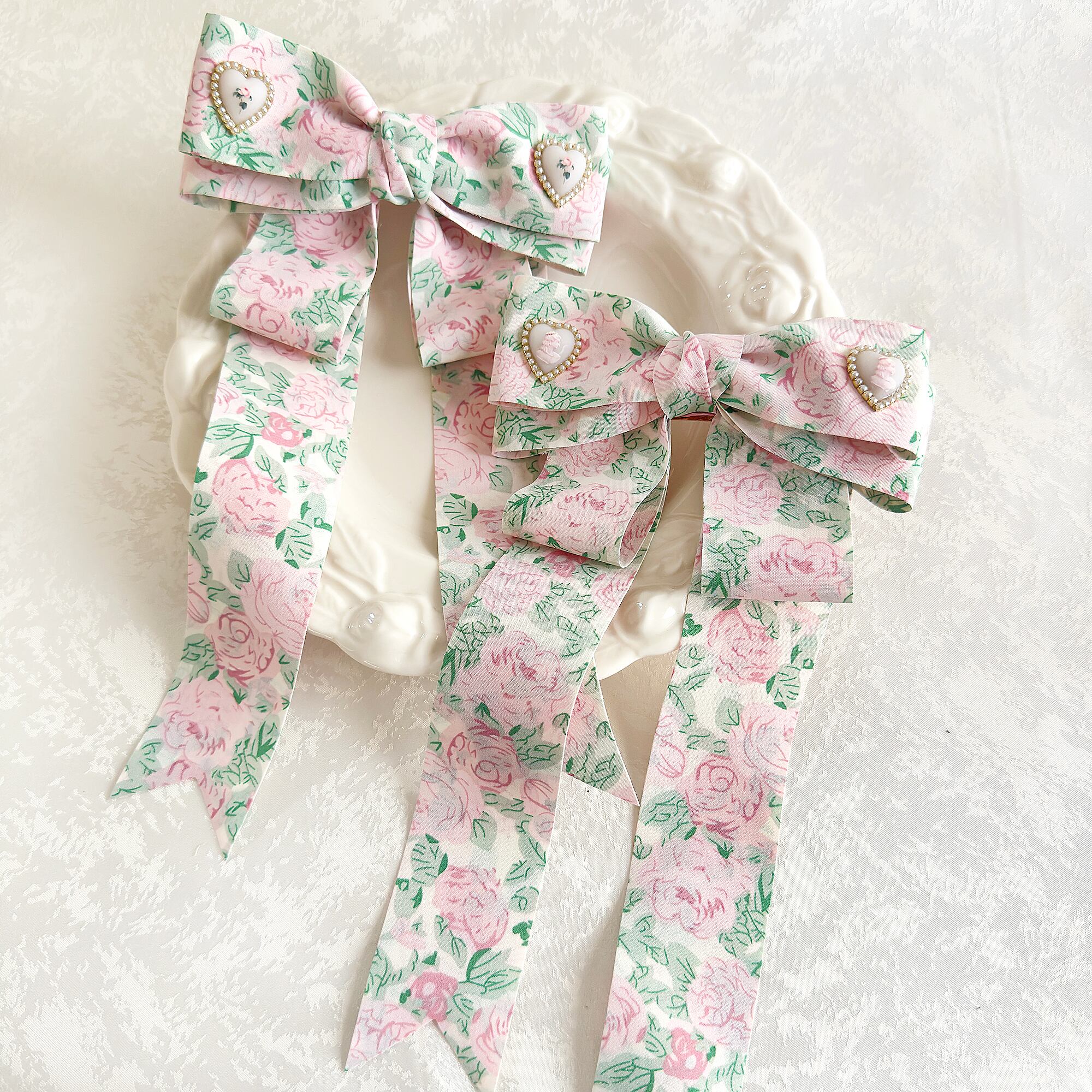 ローズ柄リボンのキュートなヘアバレッタ♡