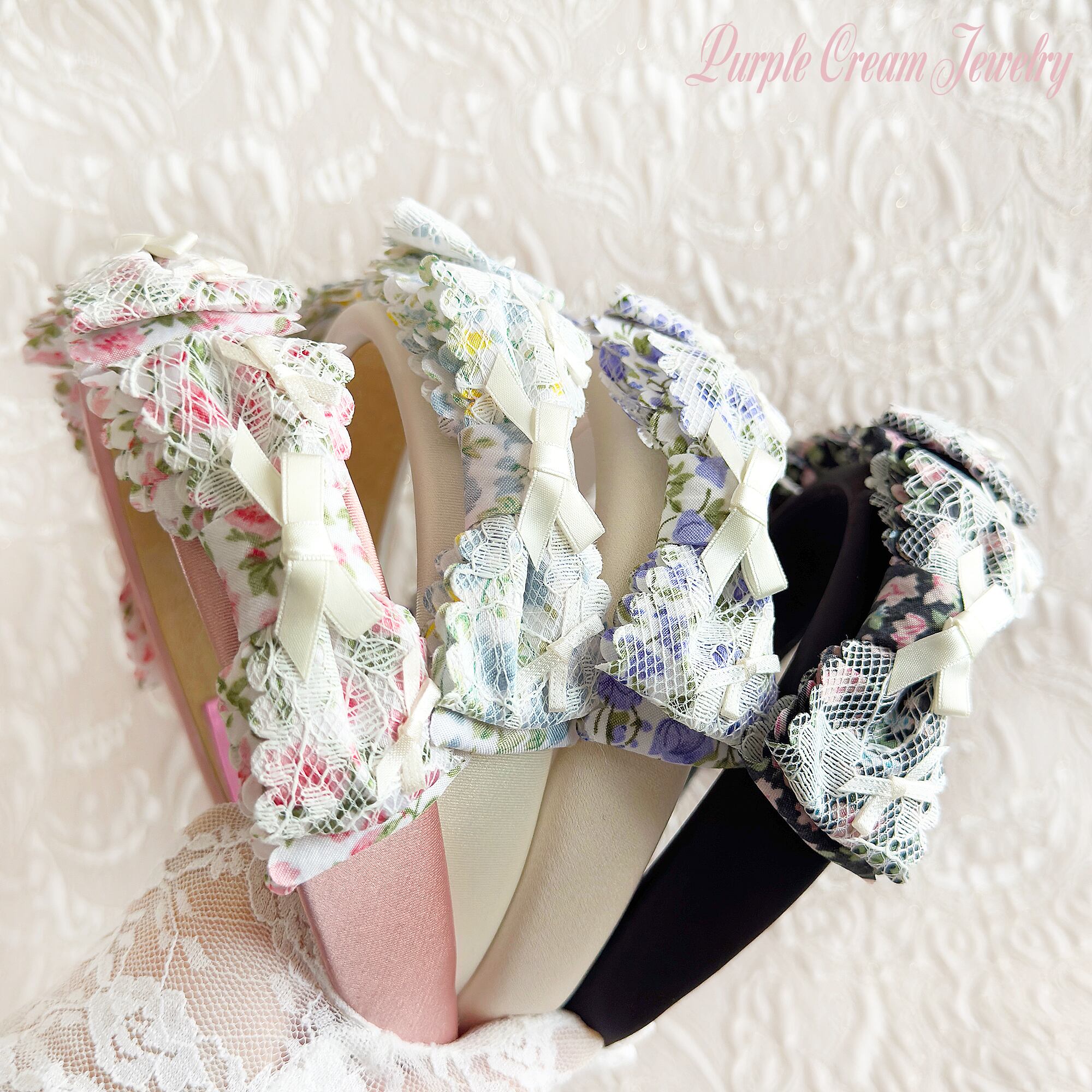 サテン生地ベースにレースリボンがついたカチューシャ♡