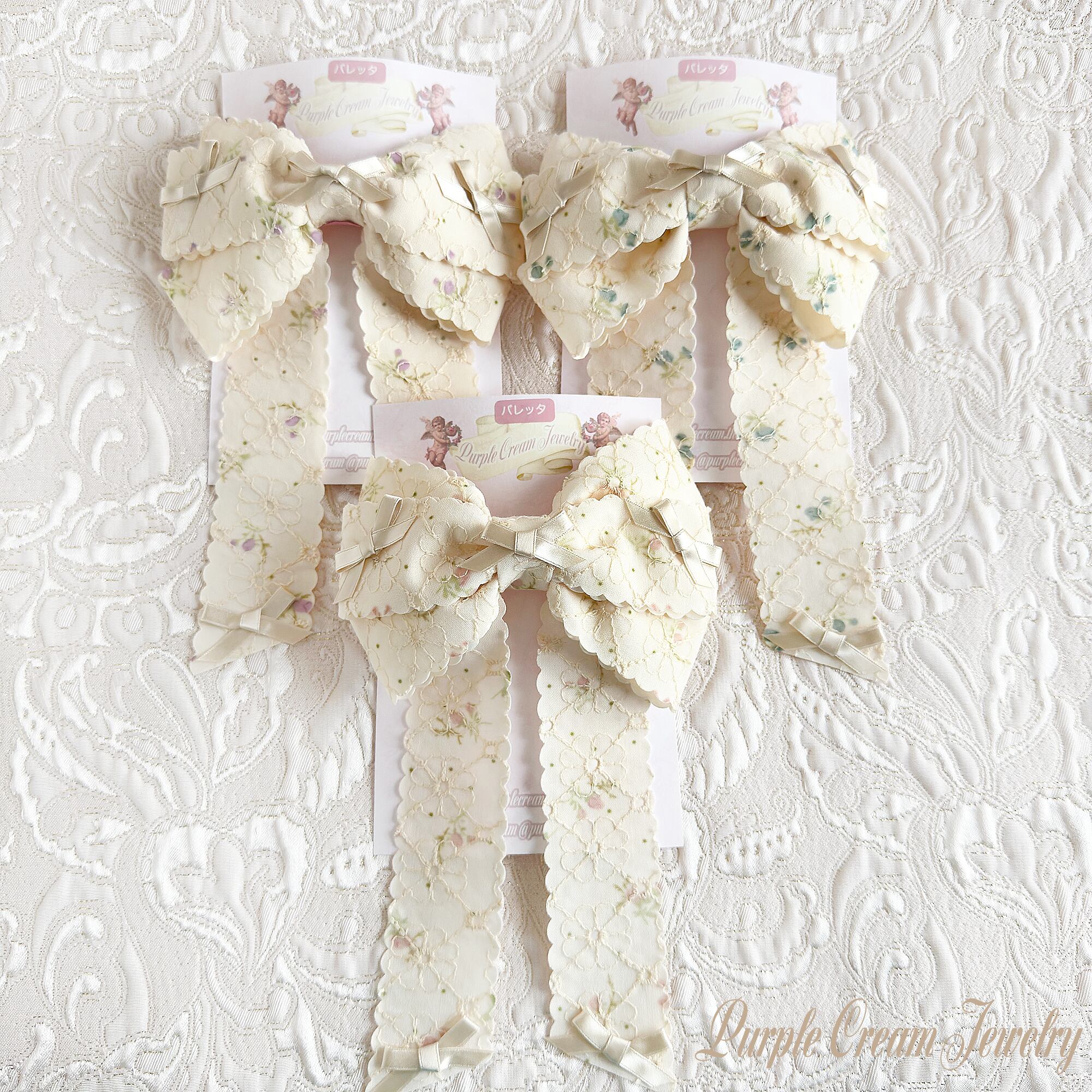 オールドフラワーリボンヘアバレッタ(ベージュ) P1779