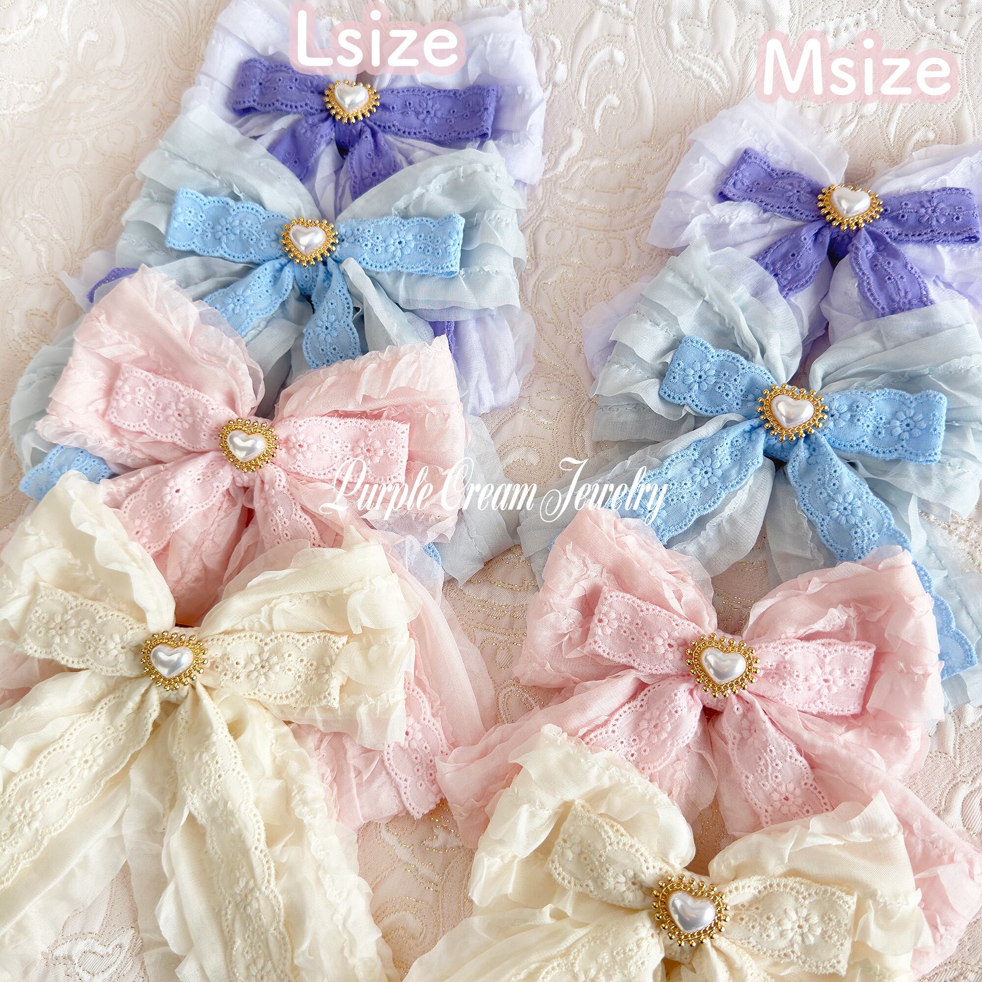 フラワーリボンとフリルボリュームリボンが組み合わされたヘアバレッタ♡